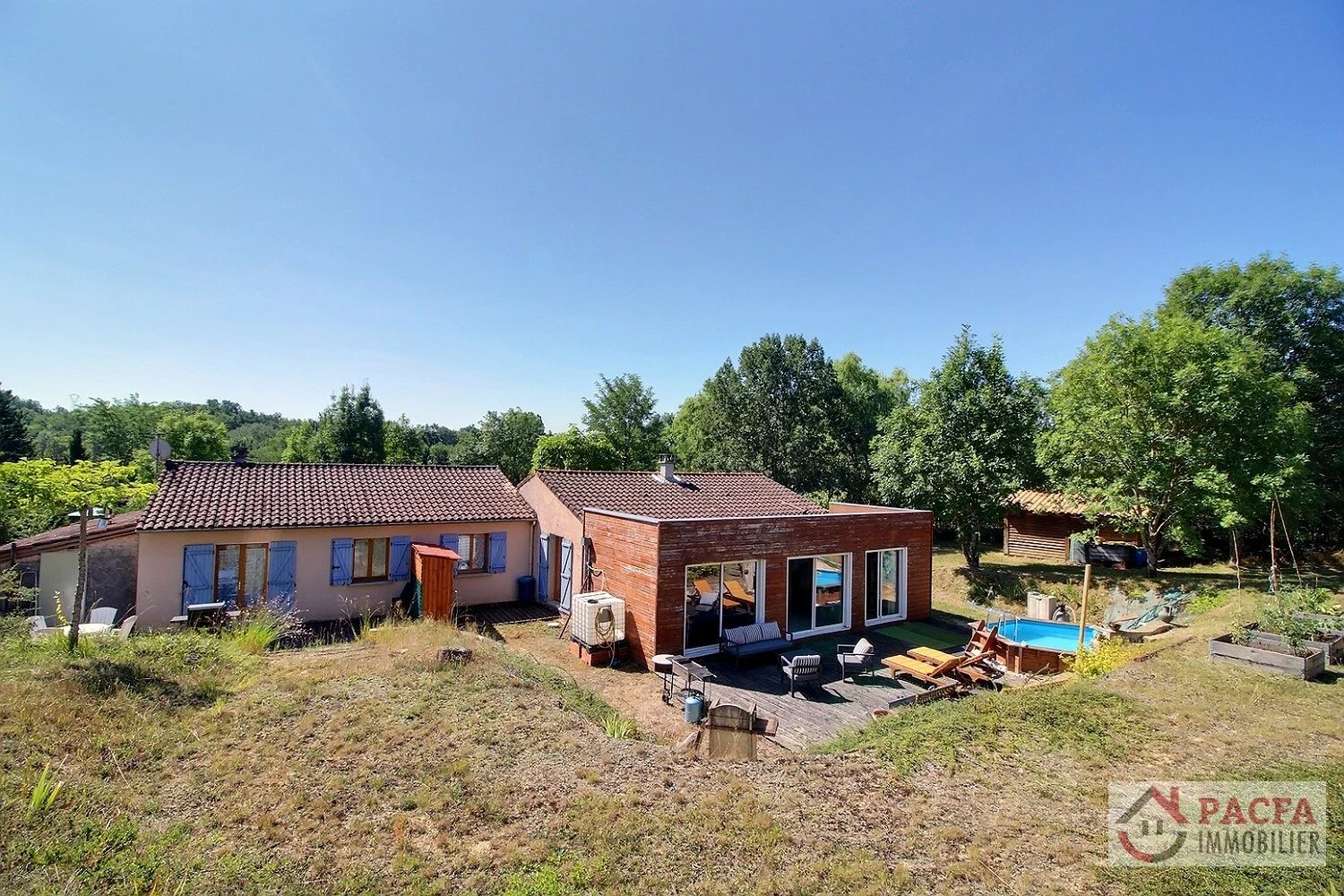 - La seconde maison d'environ 100 m² avec une extension en ossature bois dispose également de deux chambres ainsi qu'une salle de bain. L'ensemble donnant sur une terrasse en bois avec piscine.